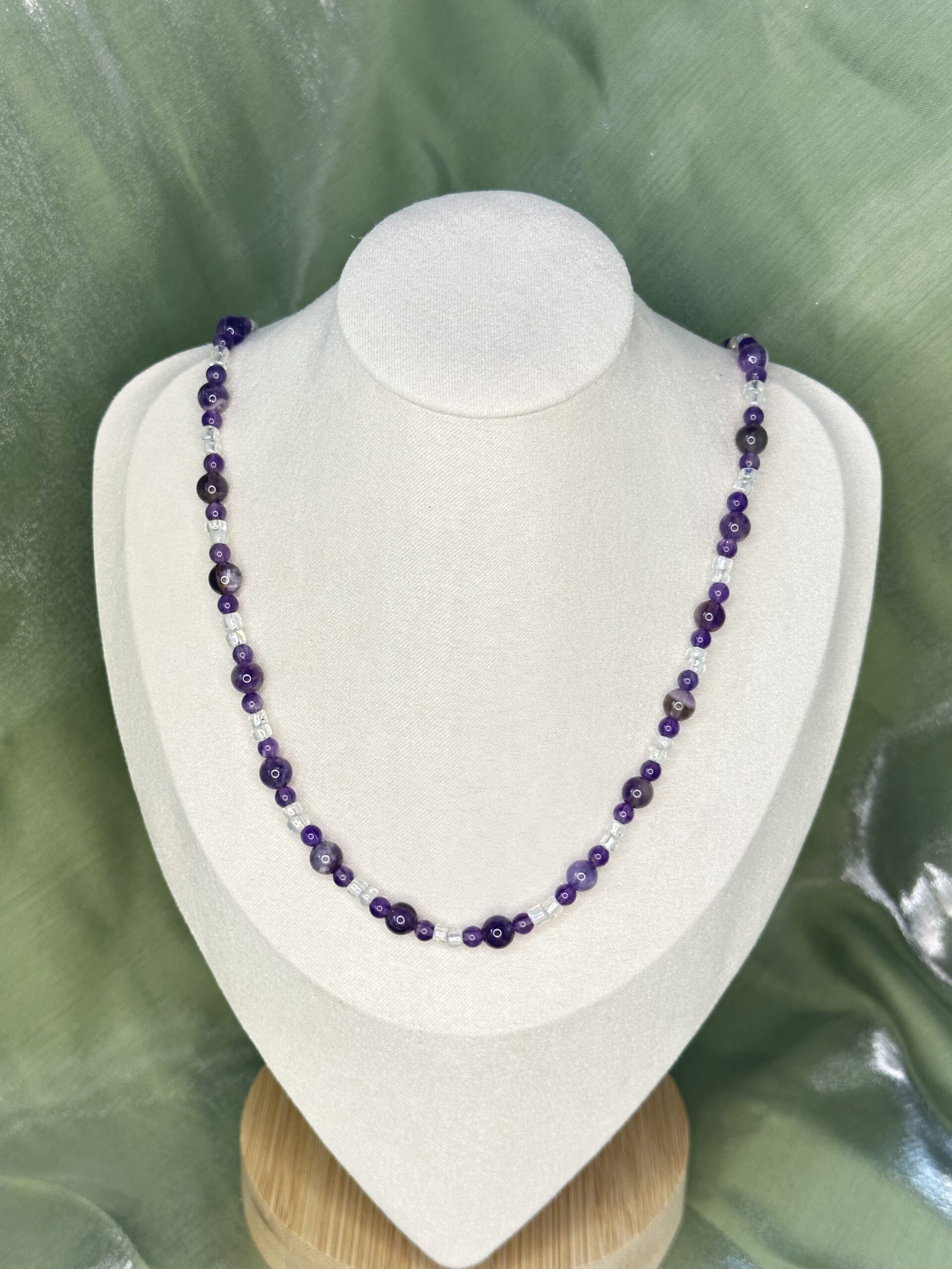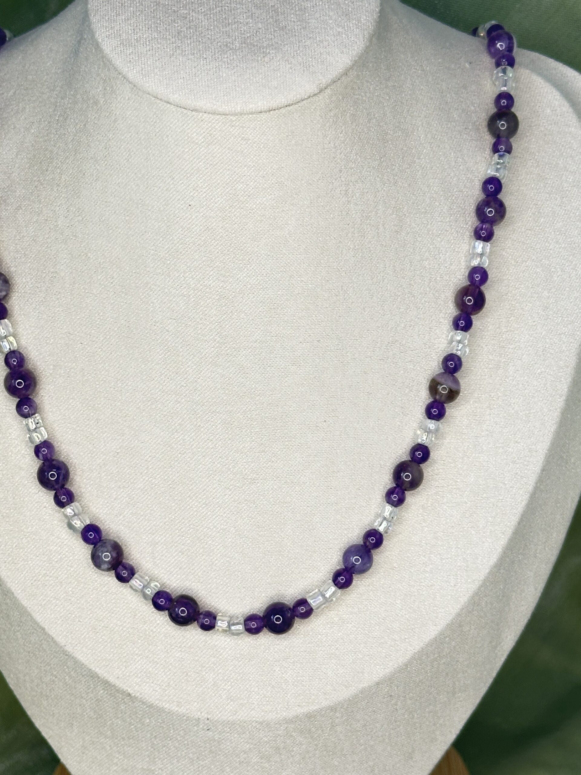 Whether you’re shopping for yourself or searching for the perfect gift, this necklace is a thoughtful and versatile option. The February birthstone-inspired amethyst beads make it an exceptional gift for those with February birthdays, while its universal appeal caters to anyone who finds joy in timeless, handmade jewelry. Its neutral yet elegant design ensures it pairs effortlessly with casual or formal ensembles, making it an indispensable part of any jewelry collection.