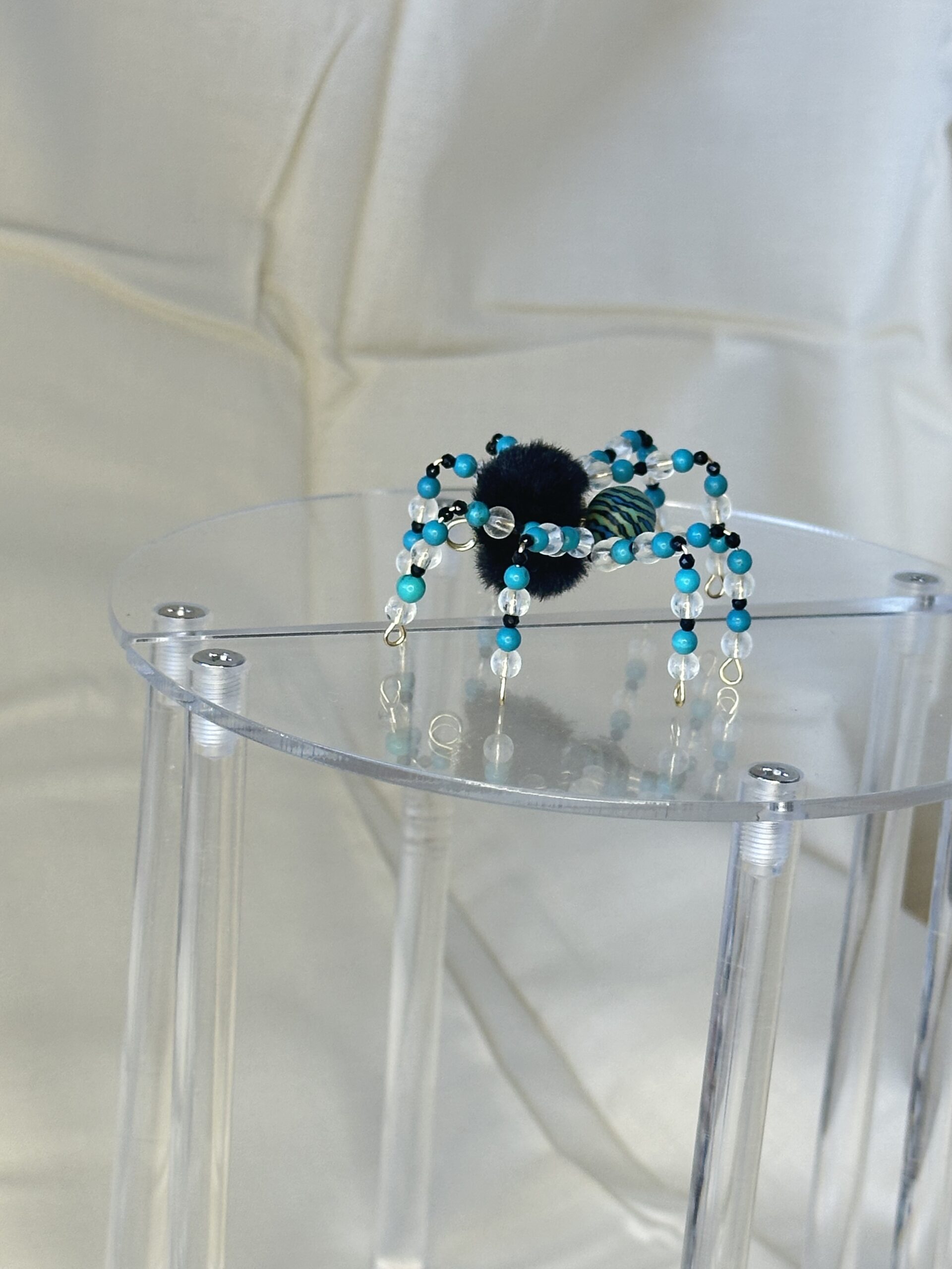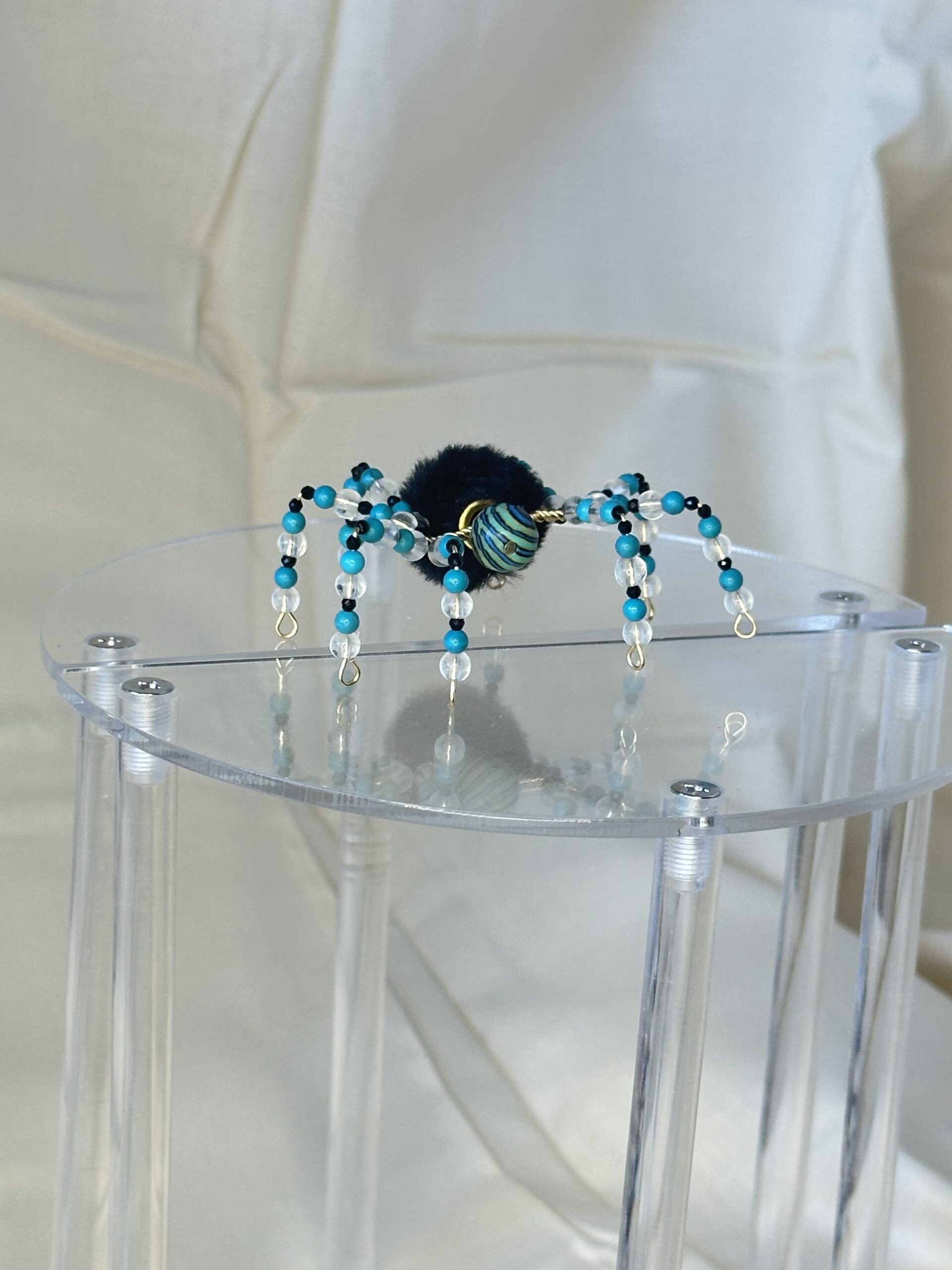 Say hello to Camden, the energetic and delightful tarantula crafted to add personality and charm to your desk. From his dyed howlite legs to his reconstituted turquoise head, every detail of this handmade spider is designed to captivate. Camden’s striking black furry body serves as a playful contrast, making him stand out in any space. His quirky personality is infused into every element, ensuring a one-of-a-kind product you’ll treasure.