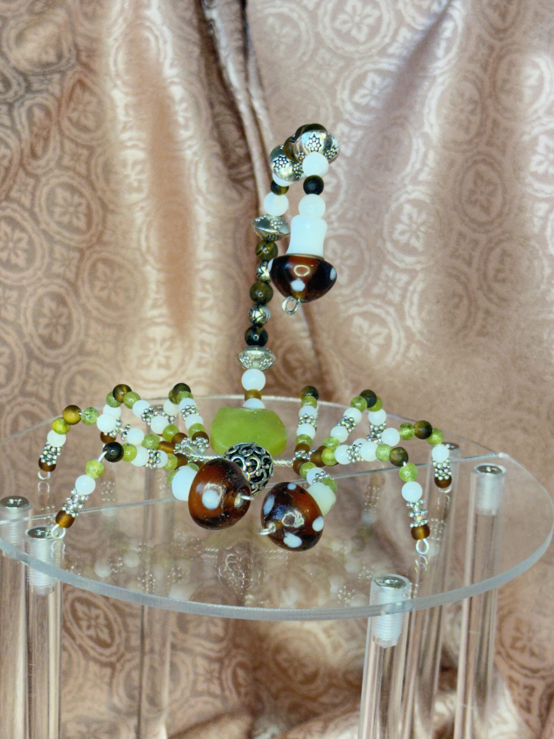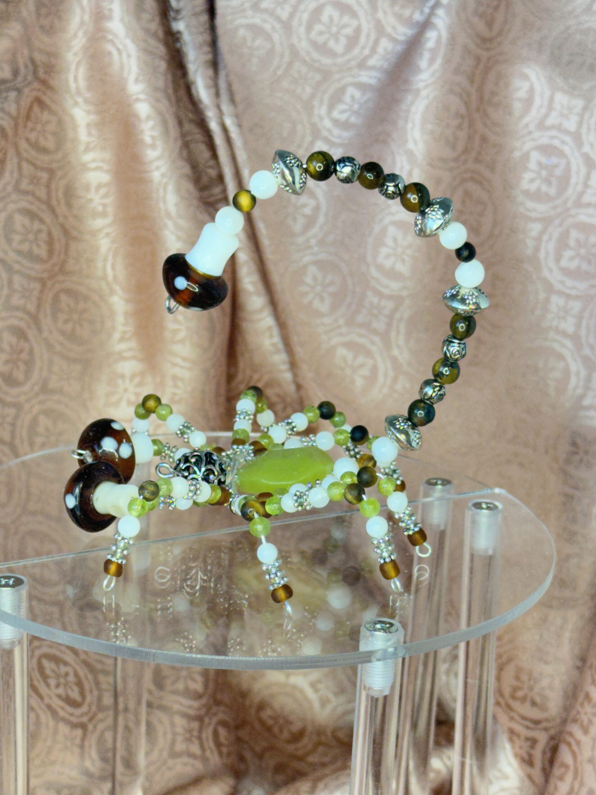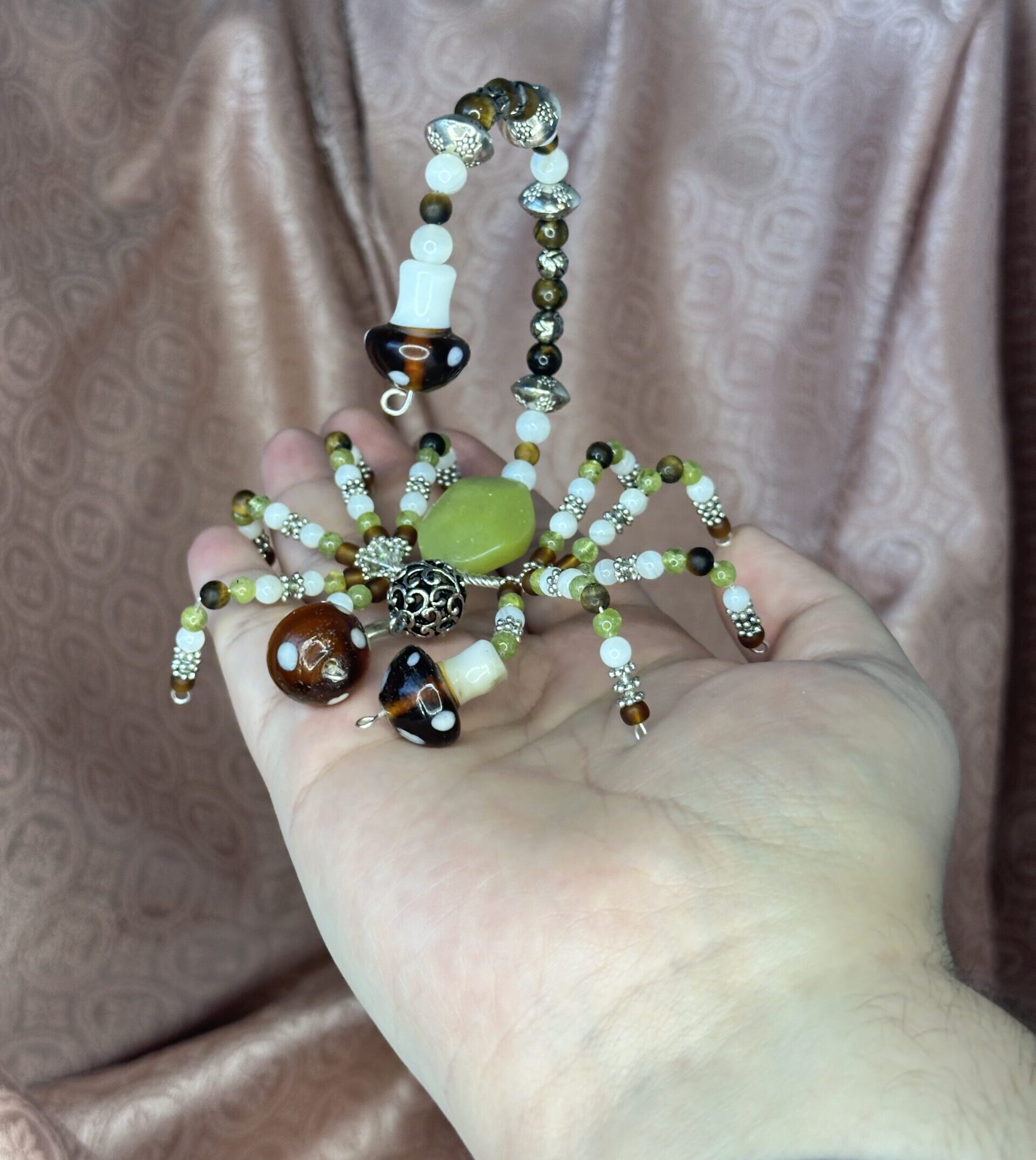 Adorned with tiger’s eye and vibrant peridot beads, Celia displays a color palette that’s both harmonious and enduring. These carefully chosen elements make her an eye-catching addition to your collection. There’s a touch of elegance in her every detail, providing both functionality and delight—perfect for any occasion.