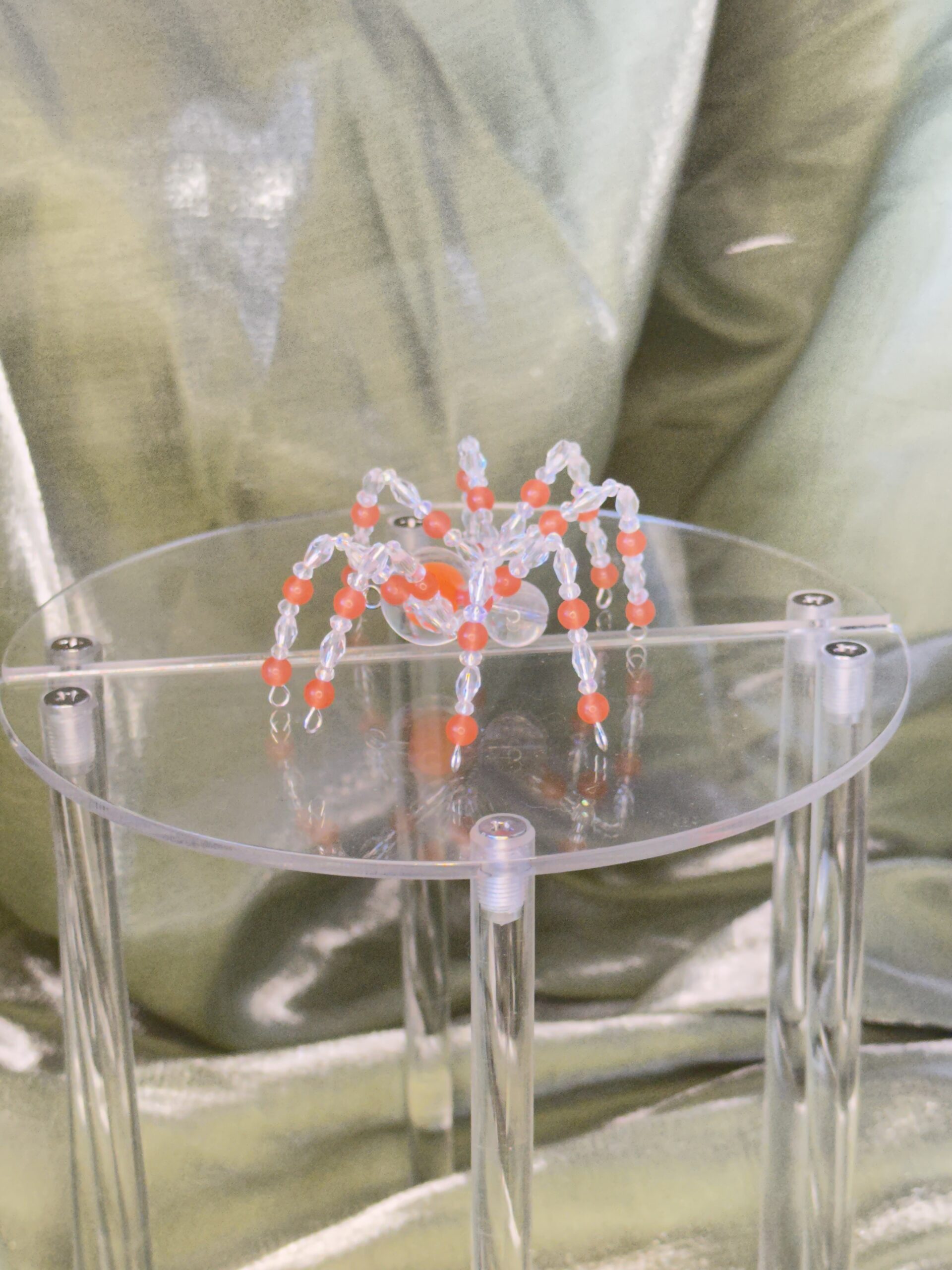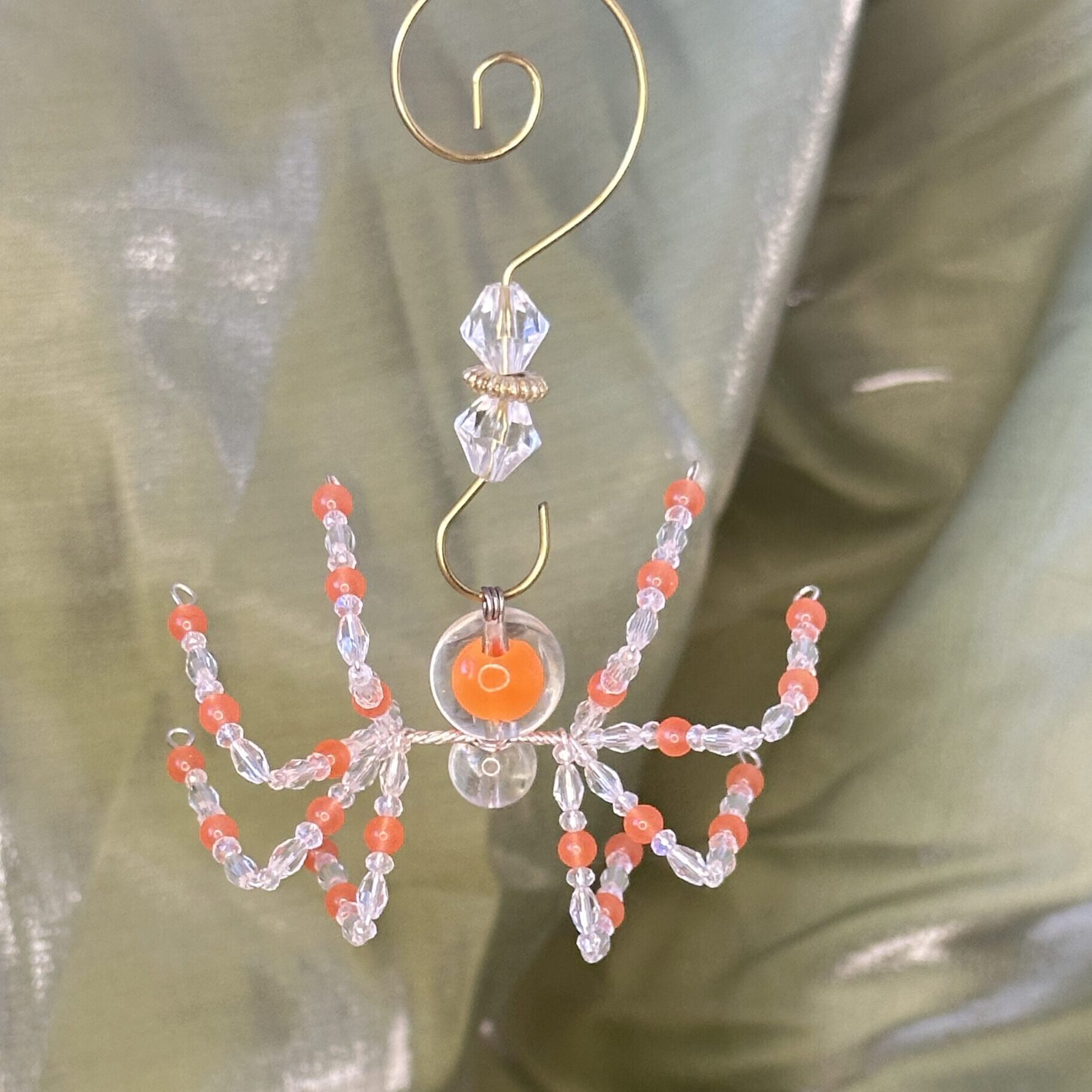 Maisie brings a pop of color and vibrancy with her striking orange aventurine legs. This delightful accent makes her the perfect eye-catching addition to any room. Whether hanging by your window or nestled in a cozy corner, Maisie is here to spread joy.