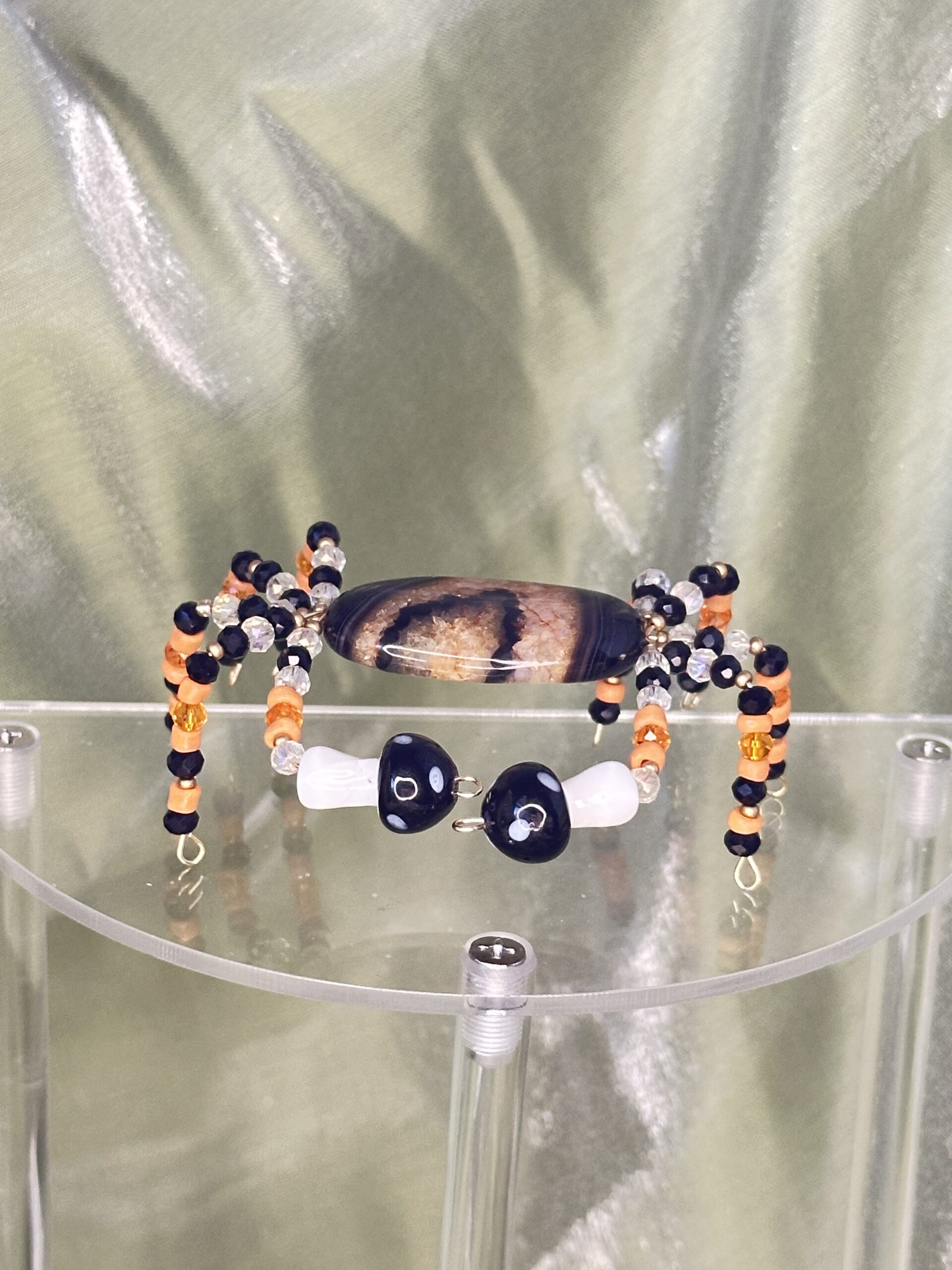 Designed with precision and care, Samantha, the handmade beaded crab, is an artistic piece that adds charm and whimsy to any space. Meticulously crafted from vibrant glass beads and topped with a stone body, this adorable crab showcases the creative blending of textures and materials. The mushroom pincers further accentuate the overall design, making Samantha an eye-catching ornament that draws attention wherever placed.