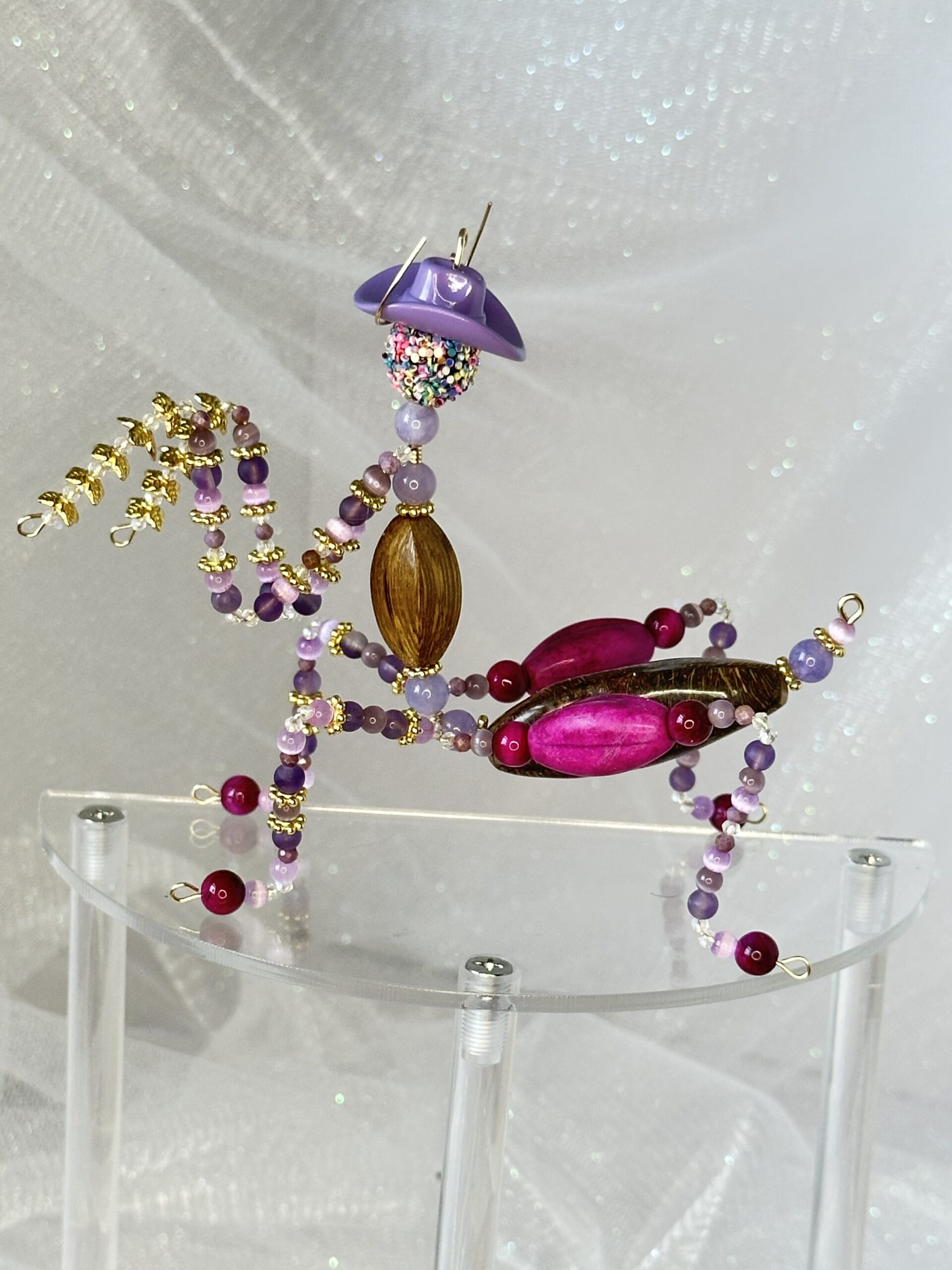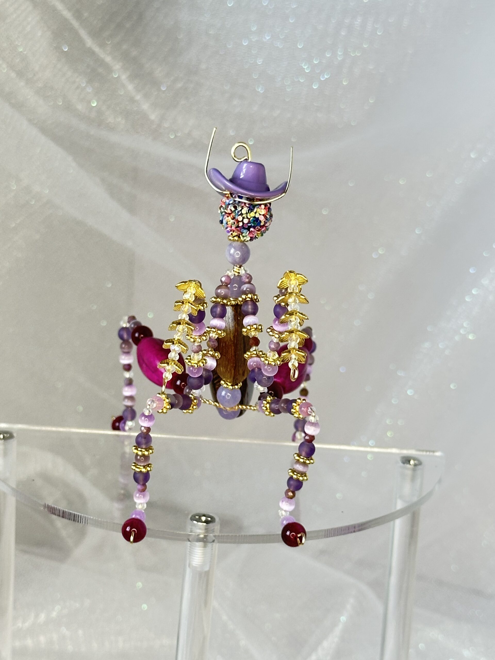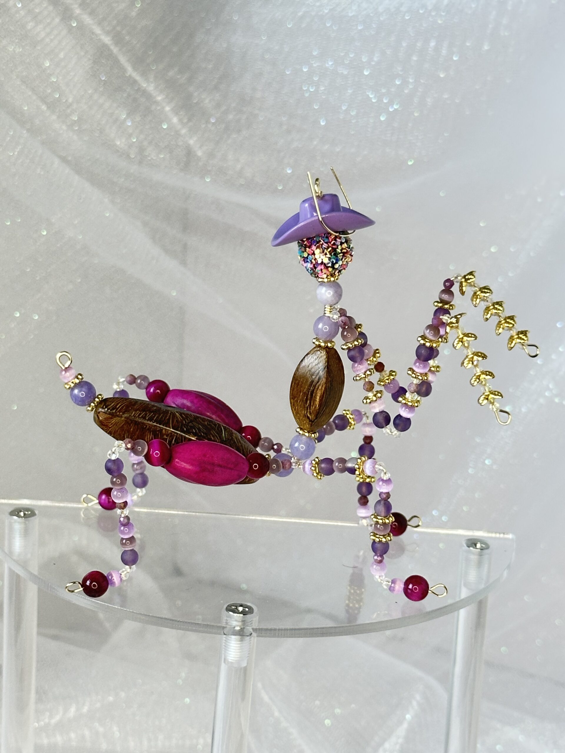 Amethyst has never looked so stunning! Paired with purple cat’s eye, lepidolite, and dyed tiger’s eye, this little companion is a delightful blend of colors and textures. Her dazzling appearance ensures she’ll be the center of attention, bringing a touch of sparkle and sophistication wherever she’s placed.