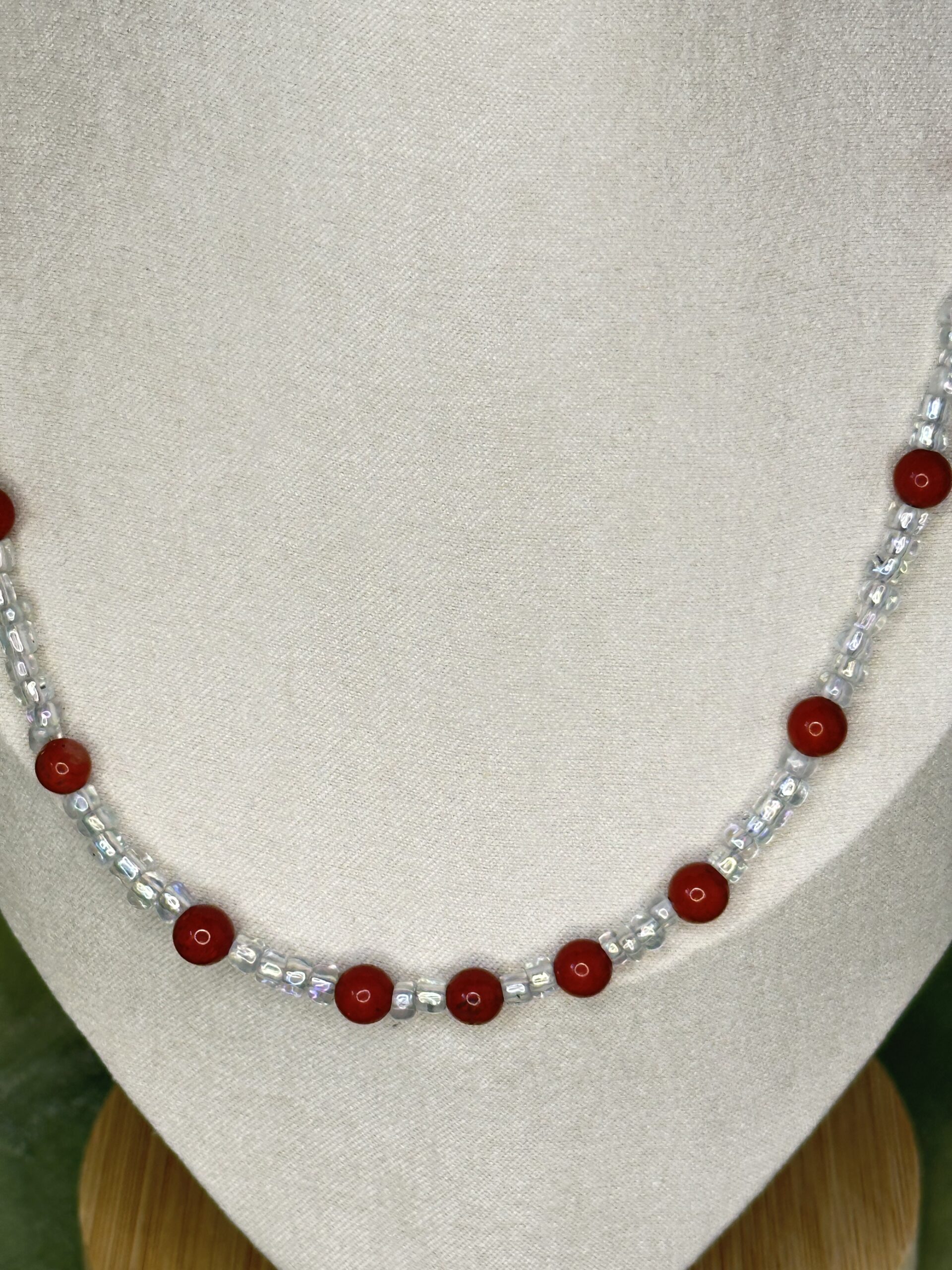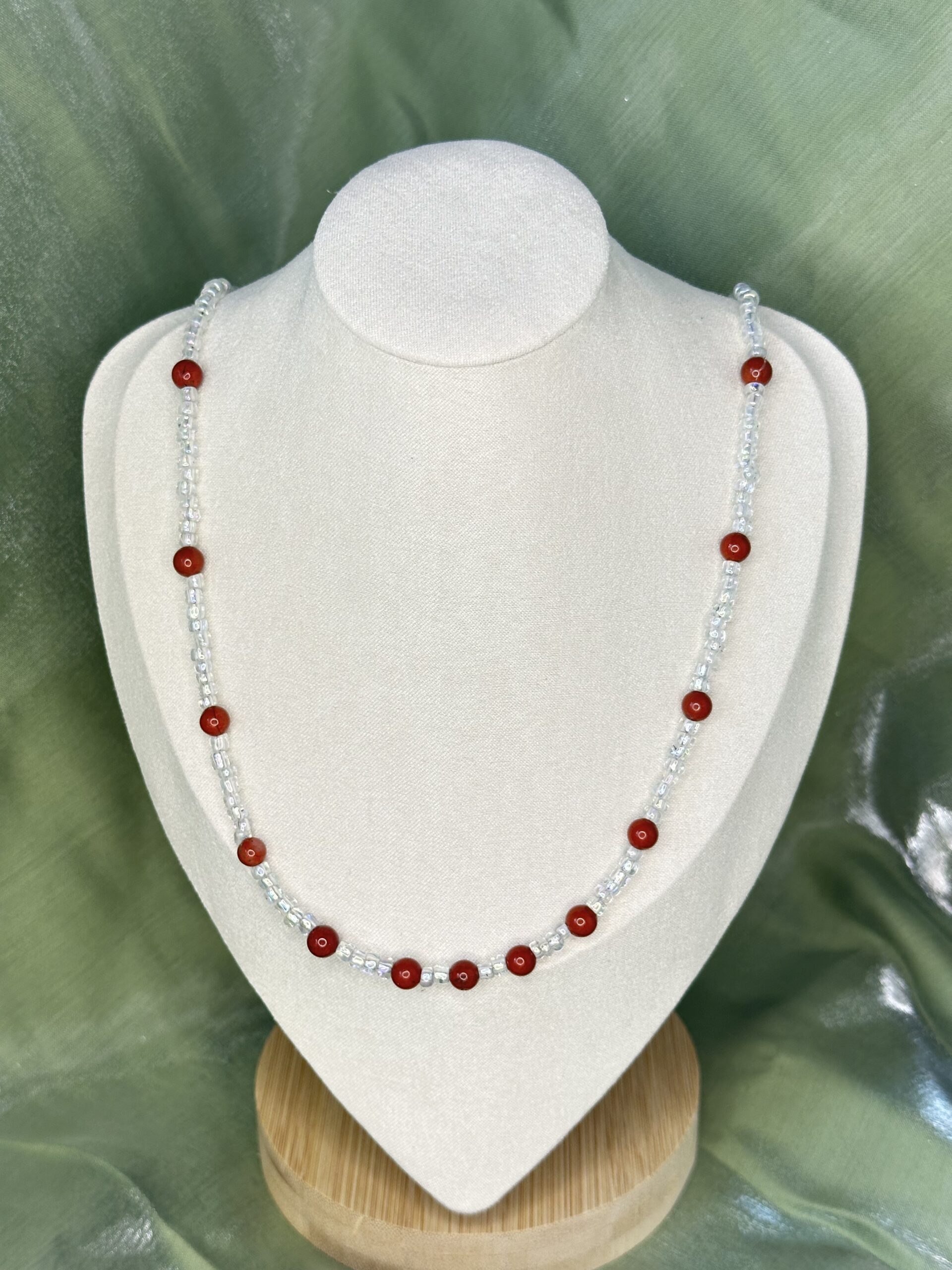 Whether you’re attending a formal office meeting, spending time with loved ones, or engaging in daily errands, this necklace transitions effortlessly across events and settings. The clear glass beads lend it a subtle brilliance while the red sandstone adds warmth and character, creating a versatile accessory that is as practical as it is beautiful. Designed to enhance your natural grace, this necklace speaks volumes without overpowering your look.