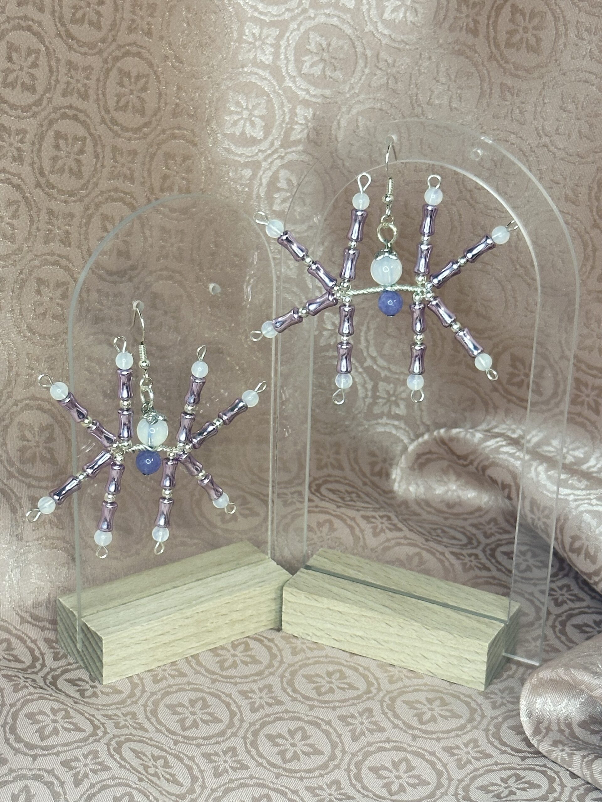 Step into a world of charm and individuality with Tia and Tamera. Lightweight and comfortable, they make an effortless addition to your everyday look or special occasion wear. Whether you’re dressing up for a night out or adding personality to casual attire, these earrings bring elegance and playfulness to the forefront. Tia and Tamera Spider Earrings feature opalite, amethyst, and coated bamboo beads. This combination of materials delivers a captivating interplay of colors, ensuring elegance and sophistication in every detail. The shimmering opalite glows softly, while rich amethyst accents add a splash of color, and the coated bamboo beads lend an earthy vibe. Together, these elements craft a design that balances quirky charm with timeless beauty. You’ll appreciate how seamlessly these earrings incorporate into your daily life—fun, bold, and effortlessly thematic. Add a creative touch to your accessory collection with these adorable sisters!